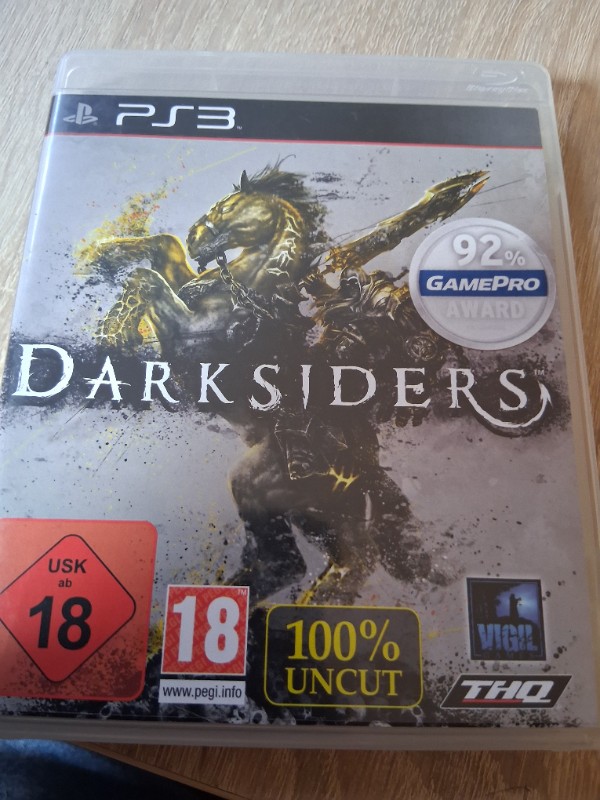 Dieses Exemplar ist klar als USK 18 gekennzeichnet und zudem mit 100% Uncut ausgewiesen – perfekt, wenn du Darksiders so erleben willst, wie es gedacht ist: direkt, hart und ohne Abstriche. Auf dem Cover ist außerdem ein GamePro Award (92%)-Siegel zu sehen – ein starkes Qualitätszeichen für alle, die sich bei ihrer PS3-Spielesammlung nicht mit Mittelmaß zufriedengeben.