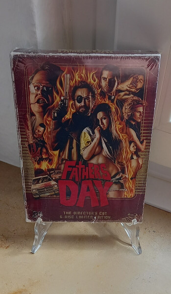 Schon die Präsentation macht Eindruck: Auf dem Foto siehst Du das Mediabook eingeschweißt in der OVP (Originalfolie), sauber geschützt und damit ideal für Sammler, die Wert auf Zustand und Werterhalt legen. Das markante Artwork mit dem großen “Fathers Day”-Schriftzug schreit förmlich nach Kult-Regalplatz - düster, provokant und absolut genretypisch. Dazu kommt der klare Hinweis auf dem Cover: “THE DIRECTOR’S CUT” sowie “6-DISC LIMITED EDITION” - das ist nicht nur irgendeine Veröffentlichung, sondern eine Edition, die auf Umfang und Exklusivität setzt.