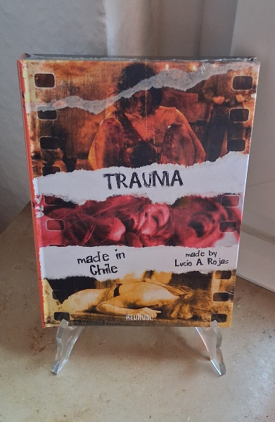 Schon das Cover macht unmissverständlich klar, wohin die Reise geht: „TRAUMA“ prangt groß in der Mitte, eingerahmt von einer filmstreifenartigen Gestaltung und intensiven, schmutzig-warmen Farbtönen. Dazu die markante Aufschrift „made in Chile“ und der Hinweis auf Lucio A. Rojas – ein Design, das nicht geschniegelt wirken will, sondern wie ein Stück Filmgeschichte aus der Horror-Ecke, das man sich ganz bewusst ins Regal stellt. Genau diese rohe Ästhetik macht das Trauma Mediabook OVP für Sammler so attraktiv: Es wirkt nicht wie Massenware, sondern wie ein echtes Genre-Objekt.