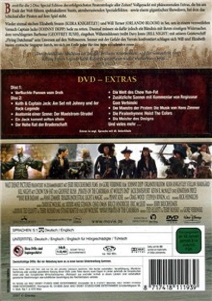 Mit der 2-Disc Special Edition DVD von Fluch der Karibik 3 – Am Ende der Welt erwartet dich ein spannendes und actiongeladenes Piraten-Abenteuer. Genieße das visuell beeindruckende Meisterwerk von Disney, das weltweit Millionen von Fans begeistert hat. In der Hauptrolle brilliert Johnny Depp als charismatischer Piratenkapitän Jack Sparrow, begleitet von außergewöhnlichen Stars wie Orlando Bloom, Keira Knightley und Chow Yun-Fat. Diese spezielle Ausgabe bietet dir nicht nur den fesselnden Hauptfilm, sondern auch eine Fülle an exklusivem Bonusmaterial auf der zweiten Disc. Tauche ein in die düsteren und dramatischen Tiefen der Karibik und erlebe die unvergesslichen Abenteuer der geliebten Charaktere. Sichere dir jetzt dein Exemplar und setze die Segel zu einem der größten Abenteuer aller Zeiten!