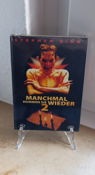 Wenn Du auf der Suche nach echtem 90s-Horror-Feeling bist, ist „Manchmal kommen Sie wieder Teil 2“ als Mediabook OVP genau der Fang, der Dein Regal aufwertet. Auf dem Cover springt Dir sofort der Stephen King-Schriftzug ins Auge – und darunter dieses unheilvolle Motiv: eine höllisch grinsende Gestalt, die wie ein dunkler Schatten über einem Schachbrett voller Kerzen thront. Schon beim Anblick spürst Du, in welche Richtung es geht: Rache, böse Mächte und dieses beklemmende Gefühl, dass manche Dinge eben wirklich… wiederkommen.