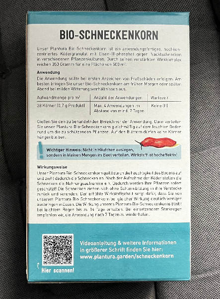 Schlagwörter: Plantura Bio-Schneckenkorn, regenfest, hochkonzentriert, wirksam, biologisch abbaubar, schont Haustiere und Nützlinge, Garten, Pflanzen