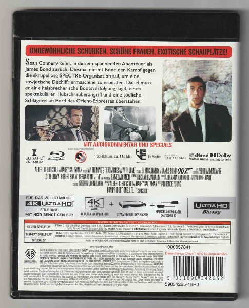 James Bond - Liebesgrüße aus Moskau -4K UHD +BR ist damit die ideale Wahl für Dich, wenn Du einen zeitlosen Agenten-Thriller in einer hochwertigen 4K UHD + Blu-ray Edition suchst – zum Sammeln, Verschenken oder für den nächsten Filmabend mit echter Bond-Atmosphäre.
