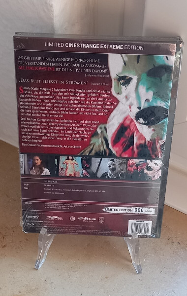 Wenn Du Horror nicht nur schauen, sondern sammeln willst, ist das Terrifier The Beginning Mediabook SonderNr. 66 OVP genau die Art Release, die im Regal sofort ins Auge sticht. Auf dem Cover thront das ikonische, albtraumhafte Motiv zu „All Hallows’ Eve – Terrifier: The Beginning“: düstere Blautöne, blutrote Akzente und dieser bedrohliche Blick, der schon vor dem Einlegen der Disc klar macht, wohin die Reise geht - kompromisslos in Richtung Hardcore-Horror.