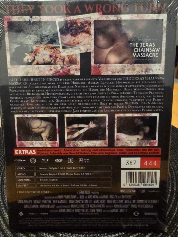 Das Butchers Mediabook kommt in einer speziellen Verpackung, die bereits auf den ersten Blick Gänsehaut verspricht. Die düsteren und blutigen Motive auf dem Cover spiegeln perfekt die Rohheit und die ungeschönte Brutalität des Films wider. Innerlich findet sich neben der Blu-ray auch ein Booklet, das exklusive Einblicke hinter die Kulissen bietet, Interviews mit den Schauspielern und weitere spannende Details zum Filmdreh enthält.