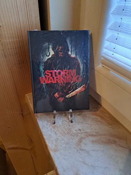 Schon das Cover macht klar, wohin die Reise geht - düster, nasskalt, bedrohlich. Der große, blutrote STORM WARNING-Schriftzug knallt Dir entgegen, während die finstere Figur im strömenden Regen und das markante Messer-Motiv sofort dieses typische „Jetzt wird’s unangenehm“-Gefühl auslösen. Genau diese Optik macht das Mediabook nicht nur zu einem Film, sondern zu einem echten Hingucker für jede Horror-Sammlung.