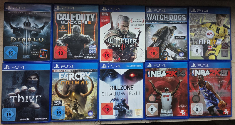 Eine Spielesammlung mit 10 PS4 Spielen.