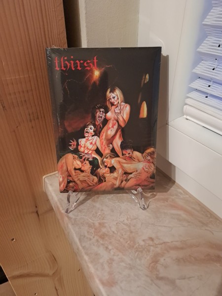 Schon das Cover macht klar, wohin die Reise geht: düster, provokant und kompromisslos im Look – genau diese Art von Artwork, die man nicht einfach im Stapel verschwinden lässt, sondern aufstellt. Das Mediabook wirkt wie ein kleines Ausstellungsstück: kräftige Farben, ikonisches Horror-Motiv und ein Titel, der direkt hängen bleibt – Thirst.