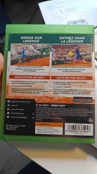 Auch technisch macht die Ausgabe einen starken Eindruck: Auf der Hülle ist 4K Ultra HD angegeben – ideal, wenn du deine Xbox One an einem passenden Setup nutzt und Wert auf ein scharfes, modernes Bild legst. Außerdem siehst du auf dem Cover das offizielle Roland-Garros-Branding – das sorgt für den authentischen Turnier-Flair, den viele Tennisfans feiern.