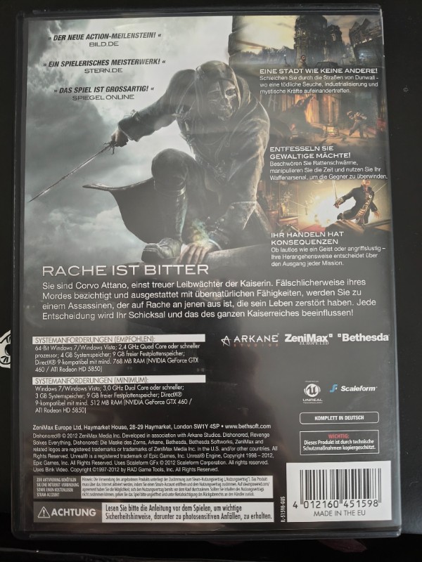 Wenn Du auf der Suche nach einem PC-Spiel bist, das Dich nicht an die Hand nimmt, sondern Dir echte Freiheit gibt, dann ist Dishonored - Die Maske des Zorns genau Dein Ding. Hier bekommst Du einen kompromisslosen Mix aus Schleich-Action, cleveren Entscheidungen und einer düsteren, intensiven Atmosphäre - und das als PC DVD in der 100% Uncut-Version.