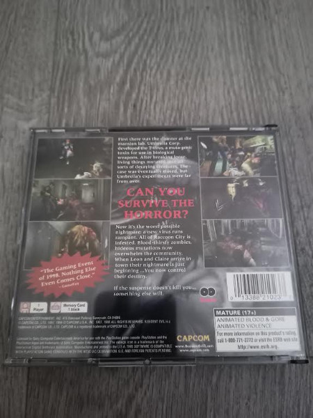 Das Spiel trägt das ikonische Resident Evil 2-Branding von CAPCOM und kommt als klassische PS1-Hülle. Auf der Front ist außerdem klar die Mature (M)-Einstufung zu sehen - typisch für die US-Version und ein weiteres Detail, das diese Ausgabe für Sammler interessant macht.