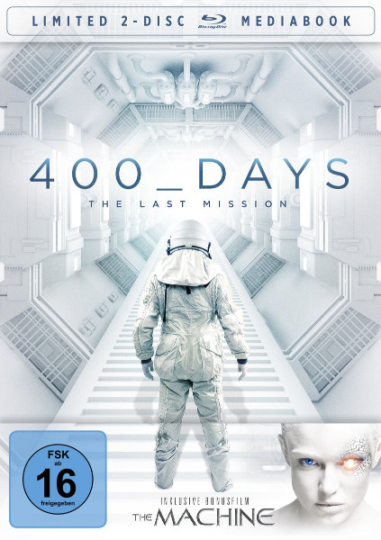 Auf dem Cover ist zusätzlich angegeben: „Inklusive Bonusfilm: The Machine“. Damit bekommst Du neben 400 Days - The Last Mission [Mediabook, 2 Discs] noch einen weiteren Sci-Fi-Titel dazu – ideal, wenn Du düstere Zukunftsthemen, Technologie und Spannung in einem Paket suchst.
