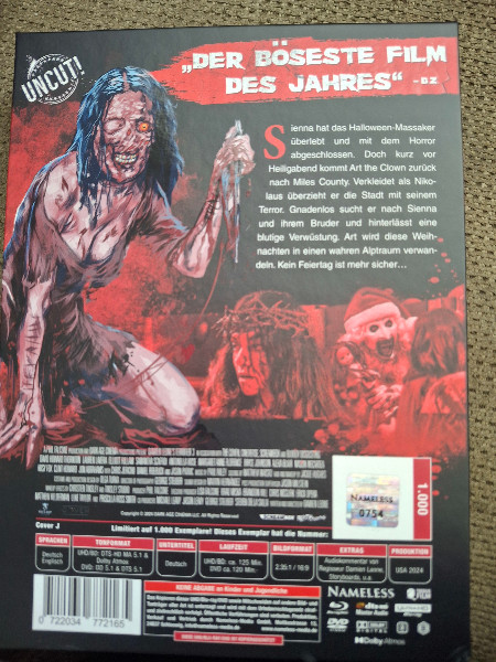 Wenn Du Dir dieses Terrifier 3 Mediabook NAMELESS MEDIA Cover J holst, kaufst Du nicht nur einen Film - Du holst Dir ein Stück moderner Underground-Horrorkultur nach Hause.