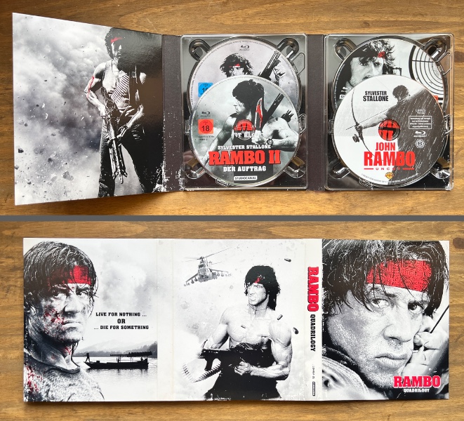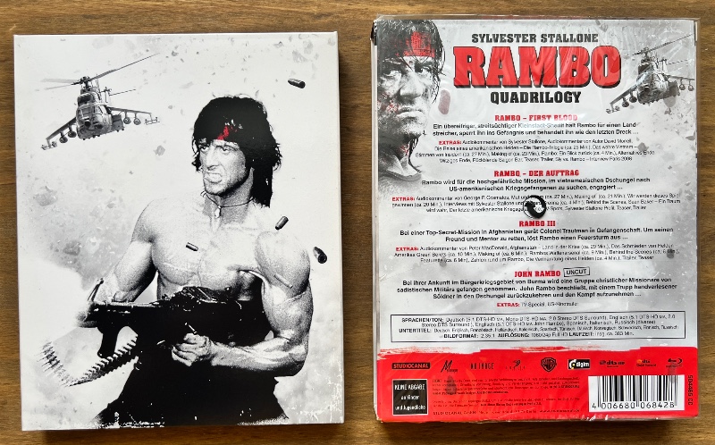 Das Digipack wirkt hochwertig und macht die Box auch optisch zu einem Highlight für Deine Sammlung. Dazu kommen 4 Blu-rays, die Dir den Rambo-Kosmos als durchgehendes Action-Paket liefern – ideal für Marathon-Abende, Sammler oder alle, die kompromisslose Action auf Blu-ray lieben.