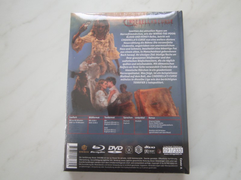 Tauche ein in eine Welt des Schreckens, die dich nicht mehr loslassen wird! Das limitierte Mediabook von "Cinderella`s Curse" präsentiert sich in einer exklusiven, wattierten Sammlerausführung, die jedem Horror-Enthusiasten das Herz höher schlagen lässt. Dieser Sammlerartikel besticht nicht nur durch seine hochwertige Verpackung, sondern auch durch außergewöhnliche grafische Kunstwerke, die sofort ins Auge fallen.