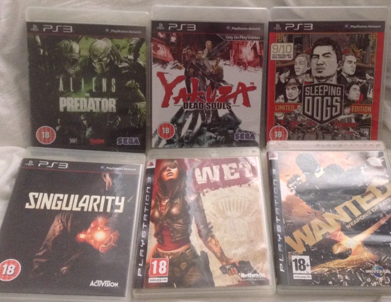 Aliens vs Predator, Wet, Wanted, Sleeping Dogs, Singularity, Yakuza Dead Souls,