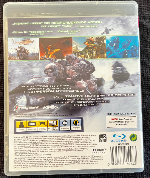 Tauche ein in die Welt von "Call of Duty: Modern Warfare 2", einem der beliebtesten Ego-Shooter aller Zeiten. Diese deutsche Version für die PlayStation 3 bietet Dir packende Kampagnen, beeindruckende Grafik und eine spannende Handlung, die Dich von der ersten Minute an fesseln wird. Entwickelt von Infinity Ward und veröffentlicht von Activision, garantiert dieses Spiel eine fesselnde Spielerfahrung, die Dich nicht mehr loslassen wird. Das Spiel ist mit einer USK 18-Kennzeichnung versehen, was eine besonders intensive und realistische Darstellung der Action bedeutet. Sichere Dir jetzt dieses Meisterwerk und begib Dich auf eine unvergessliche Mission voller Adrenalin und Spannung.
