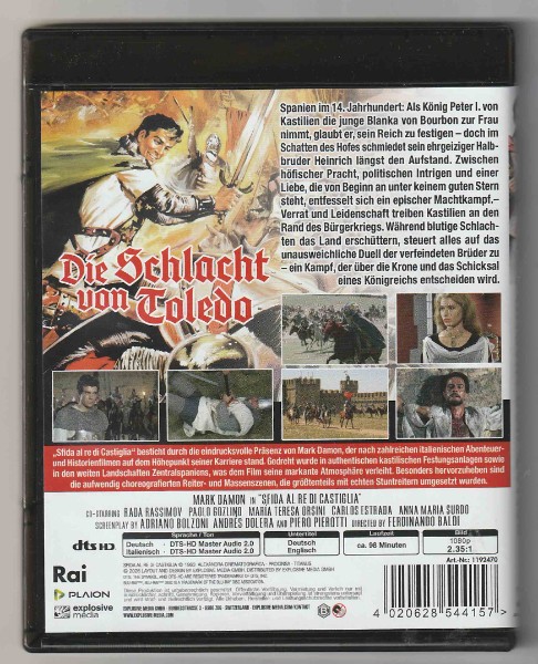 Als Blu-ray in der Kategorie Blu-ray, Abenteuer ist „Die Schlacht von Toledo“ ideal, wenn Du epische Kulissen, Rüstungen, Banner und das Gefühl großer historischer Konflikte liebst. Das Artwork wirkt wie ein klassisches Filmplakat alter Schule - perfekt für Sammler, die diese Art von Abenteuerfilm bewusst suchen und nicht einfach nur „irgendeinen“ Titel.