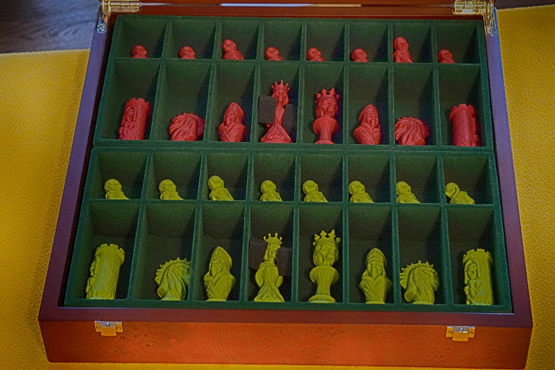 Das Set wird OHNE Schachbrett geliefert.