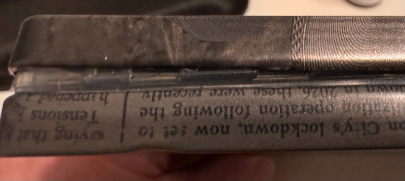 Das Cover ist jedoch an einigen Stellen beschädigt, welches durch den Versand bedingt ist.