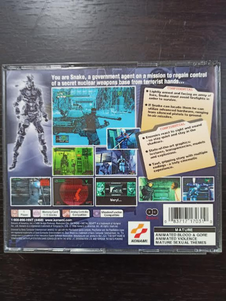 Was dich erwartet, ist kein simples Actionspiel, sondern ein spannungsgeladenes Erlebnis, bei dem Taktik und Timing zählen. Metal Gear Solid US ist perfekt, wenn du Spiele liebst, die dich wirklich fordern – und die dir dieses typische PS1-Gefühl geben, bei dem schon das Einlegen der Disc nach „Legendär“ schmeckt. Das Ganze kommt im klassischen PlayStation-Case mit dem markanten METAL GEAR SOLID-Coverdesign – ein Stück Gaming-Geschichte, das im Regal sofort auffällt.