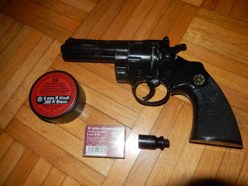 Schreckschuss Revolver + 40 Knallpatronen + 10 Pfefferpatronen +Aufsatz