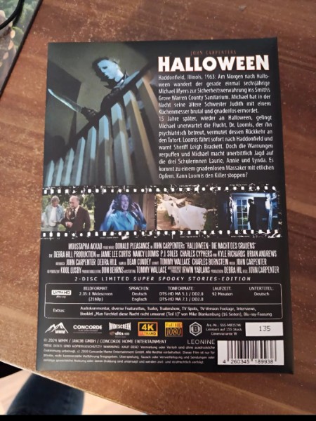 Wenn Du Horror liebst, der nicht auf billige Effekte setzt, sondern Dir langsam und gnadenlos die Luft zum Atmen nimmt, dann ist Halloween Die Nacht des Grauens 4k Mediabook genau das Richtige für Dein Regal. Schon das Artwork auf dem Mediabook schreit nach klassischem Slasher-Feeling: Michael Myers – diese bleiche, ausdruckslose Maske – dominiert das Cover, das Messer fest in der Hand. Ein Blick darauf reicht, und Du weißt: Hier kommt kein Monster aus dem Schatten – hier kommt die Angst selbst.