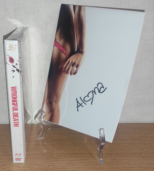 Zusätzlich ist auf dem Bild eine Autogrammkarte/Signaturkarte zu sehen (handsigniert wirkend, Name „Alina“). Genau solche Extras machen eine Edition zur persönlichen Sammlerbeute – nicht einfach nur ein Film, sondern ein Stück Szene-Release mit besonderem Touch.