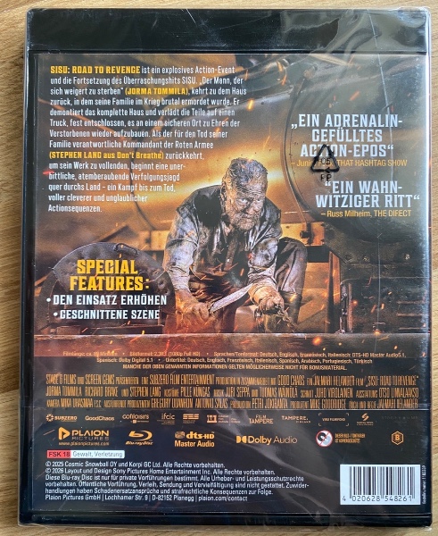 Diese Blu-ray kommt als Neuware (eingeschweißt) und ist klar als FSK 18 gekennzeichnet – perfekt, wenn Du harte, intensivere Actionfilme suchst, die nicht weichgespült sind. Der Titel ist auf der Verpackung deutlich zu sehen: „SISU – Road to Revenge“, dazu die prominent genannten Darsteller Jorma Tommila und Stephen Lang. Wenn Du Filme liebst, in denen ein einzelner Mann gegen übermächtige Gegner antritt und sich mit unbeugsamem Willen durchbeißt, triffst Du hier genau ins Schwarze.