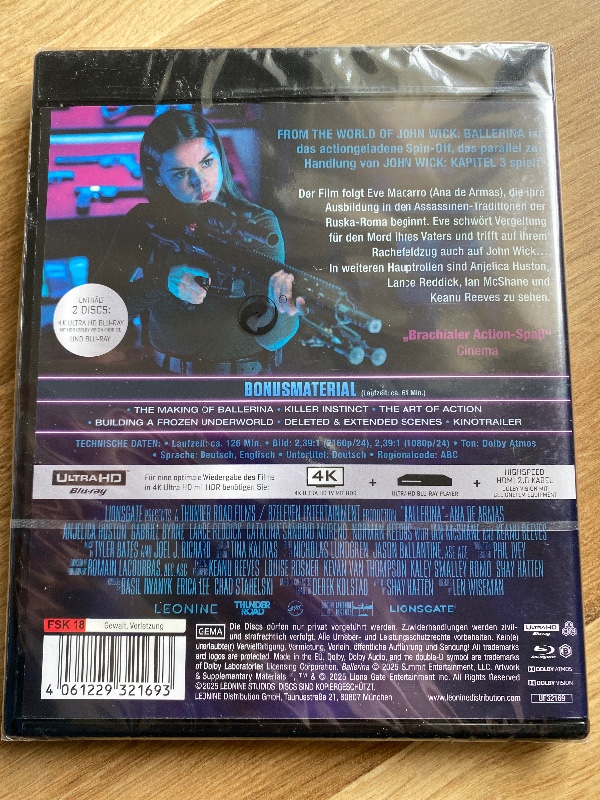 Wenn Du Dir John Wick Ballerina (2025) 4K UHD Blu-ray Neu deut sichern willst, ist das genau die Art Release, die im Action-Regal nicht fehlt: hart, stylisch und absolut auf Kino-Feeling getrimmt.