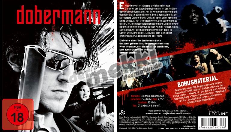 Extras: Audiokommentar der Regisseurs sowie Vincent Vassel und Tchéky Karyo / Audiokommentar der Filmemacher / Making Of / Der Anfang vom Anfang / Special Effects / Vor den Dreharbeiten / Storybord und Film / zusätzliche Szenen / Dobermann Internationale Bildergalerie