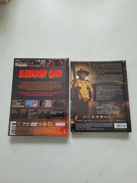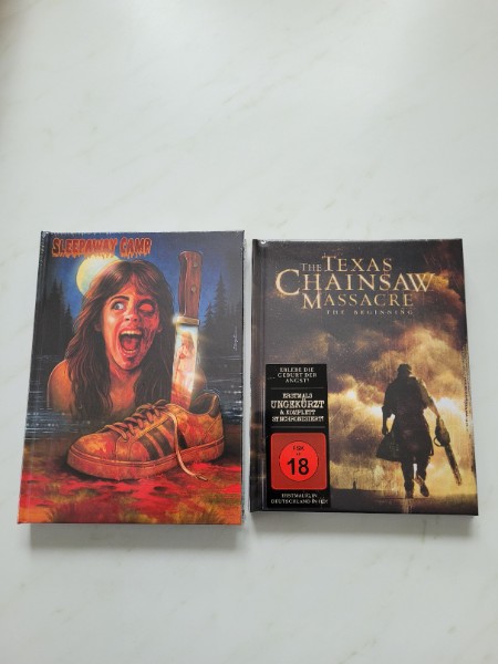 Beide Ausgaben wirken auf dem Foto wie echte Sammlerstücke: kräftige Cover-Artworks, wertige Präsentation, genau dieser „Ich-stell’s-mir-ins-Regal“-Faktor. Wenn Du Horror nicht nur schauen, sondern sammeln willst, ist das Sleepaway Camp + TCM The Beginning, Mediabook eine richtig starke Kombi – zwei komplett unterschiedliche Horrorfarben, die zusammen ein rundes Doppelpaket ergeben: einmal Sommercamp-Slasher mit Kultstatus, einmal Texanischer Albtraum mit roher Härte.