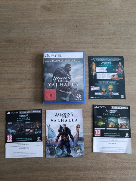 Hallo. Biete hier Assassin''s Creed Valhalla für die PS5 zur Ersteigerung an. Wie auf den Bildern zu sehen handelt es sich um die Ursprüngliche Ultimate Edition. Die Codes wurden aber alle von mir benutzt und sind nicht mehr Gültig. Ansonsten ist alles in gutem Zustand und die Disk läuft Einwandfrei.