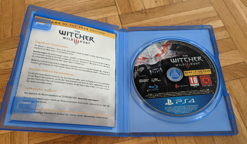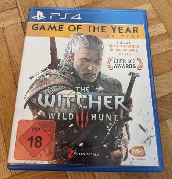 Auf der Hülle ist die USK 18 klar erkennbar - The Witcher 3 richtet sich damit an ein erwachsenes Publikum. Das passt: Tonfall, Themen und Darstellung sind bewusst reifer gehalten. Gleichzeitig ist die PS4-Version als physisches Spiel für viele auch eine Sammlerfrage. Gerade „Game of the Year“-Editionen landen oft nicht im Austauschstapel, sondern bleiben im Regal - weil sie das „rundeste“ Paket einer Spiele-Generation darstellen.