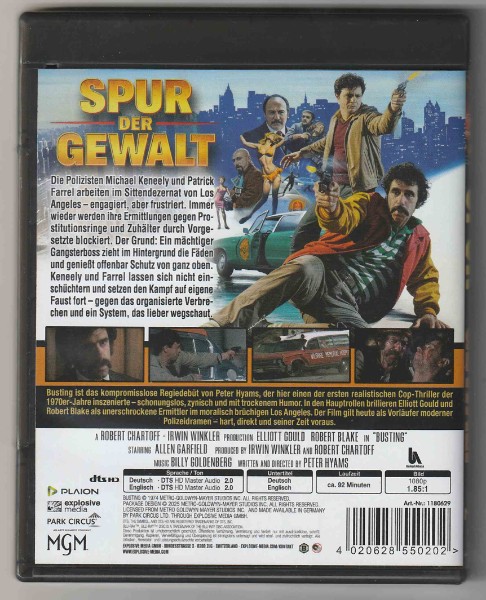 Das Bild der Blu-ray-Hülle zeigt eine dynamische und dramatische Darstellung, die sowohl Spannung als auch die düstere Atmosphäre des Films einfängt. Unter der Regie des talentierten Regisseurs weist der Film eine sorgfältige Mischung aus Action, Drama und Spannung auf. Mitsamt einer fundierten Charakterentwicklung und einem intensiven Plot bietet "Spur der Gewalt - Busting" eine unvergessliche kinematografische Erfahrung.