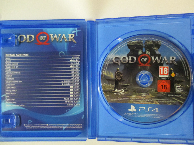 God of War PS4 (Komplett Deutsch) wie abgebildet: Spiel in Original Hülle und sehr guten Zustand. Info siehe Original Bilder .Beiliegende Codes,Gutscheine usw....sind nicht mehr einlösbar.Bei Fragen einfach mailen !!Versand möglich.Kosten trägt Käufer 5,19 Eu Versichert als Hermes Päckchen.Zahlung.Überweisung ,Paypal Freunde oder Abholung: ++++++ Haftungsausschluß : Der Verkauf erfolgt unter Ausschluß jeglicher Sachmängelhaftung! Die Haftung auf Schadenersatz wegen Verletzung von Gesundheit,Körper oder Leben und grob fahrlässiger und/oder vorsätzlicher Pflichtverletzungen bleibt unberührt !Der Artikel, wird so wie beschrieben, von Privat verkauft. Mit ihrem Gebot erklären Sie sich mit diesen Bestimmungen einverstanden! Damit entfällt auch jeglicher Garantieanspruch!!! Bieten Sie deshalb nur, wenn Sie den Artikel auch wirklich erwerben möchten. Bei Unklarheiten setzen Sie sich vor dem Kauf mit dem Verkäufer in Verbindung. Wenn Sie ihr Gebot abgeben, schließen Sie einen rechtsverbindlichen Vertrag über den Kauf des Artikels ab