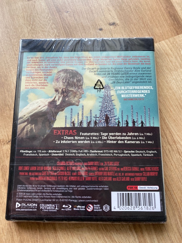 Bei 28 Years Later (2025) Blu-ray Neu deutsch ist klar, worauf du dich verlassen kannst: Es ist eine Blu-ray mit deutscher Ausführung und sie ist neu. Außerdem ist die Veröffentlichung sichtbar mit FSK 18 gekennzeichnet - also ganz eindeutig Horror/Thriller-Terrain, das keine Rücksicht auf zarte Nerven nimmt.
