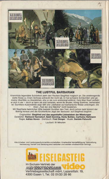 Wenn du in der Kategorie Videos / VHS,Classics suchst, suchst du meist nicht „perfekt“, sondern „echt“. The Lustful Barbarian - Geiselgasteig Hartbox VHS passt da ideal rein: Als Hartbox-Ausgabe wirkt sie wie ein Stück Videotheken-DNA - etwas, das man ins Regal stellt, weil es eine Zeit repräsentiert, in der Genre-Filme ihren eigenen Markt, ihre eigenen Regeln und ihren ganz eigenen Stil hatten.