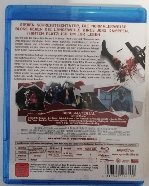 Auf dem Cover wird klar kommuniziert: „Vom Regisseur von Creep“. Das ist ein Signal an alle, die britischen Horror mögen, der nicht geschniegelt daherkommt, sondern dreckig, nervös und unangenehm nah dran bleibt. SEVERANCE ( UNCUT ) wirkt wie ein Film, der das Publikum erst anlacht - und dann mit Anlauf in die Schockmomente tritt. Dieses Wechselspiel aus Spannung und bitterer Pointe ist die Sorte Horror-Unterhaltung, die man gern mit Freundeskreis schaut, weil nach jeder Szene Gesprächsstoff bleibt.