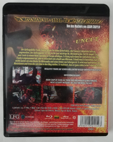 Auf dem Cover wird HOTEL INFERNO ( UNCUT ) als „The first ego-shooter splatter movie ever!!!“ beworben - und genau das ist der Hook. Der Film will sich anfühlen wie ein brutaler First-Person-Trip, wie man ihn aus Games kennt: vorwärts, durch Räume, durch Chaos, mit maximaler Unmittelbarkeit. Das ist ein Konzept, das Popkultur-Fans sofort einordnen können - irgendwo zwischen der Adrenalin-Ästhetik moderner Shooter und dem kompromisslosen Körperhorror, den man eher aus der härteren Ecke des Genrekinos erwartet.