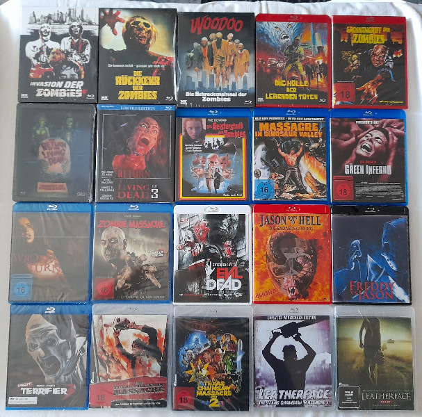 Die Bluray''''s, die nicht mehr in Folie sind, wurden 1x von mir geschaut und sind absolut neuwertig (bis auf Freddy vs. Jason - Amary mit Schaden!)