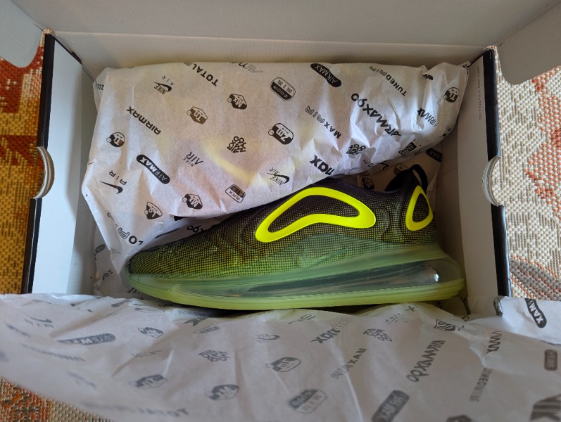 Ein echter Blickfang aus der Air-Max-Reihe: schwarze Basis, leuchtende Neon-Akzente und die massive 720-Air-Sohle, die dieses Modell so besonders macht. Der Schuh wirkt futuristisch, auffällig und gleichzeitig absolut tragbar — genau die Art Sneaker, die heute nicht mehr an jeder Ecke zu finden ist.