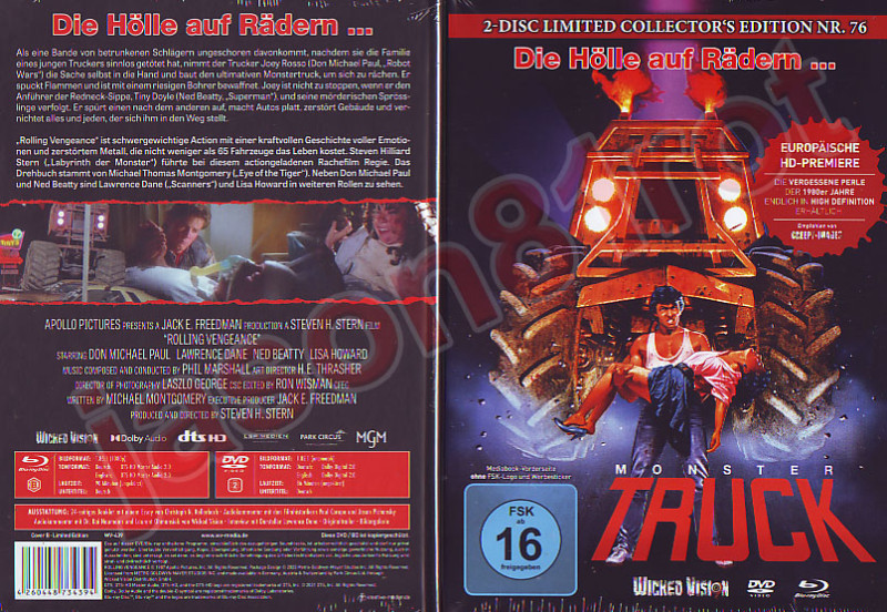 Rolling Vengeance - Monster Truck - Lim. MB OVP klingt nach einer Sammler-Ausgabe für Fans von kernigem Genre-Stoff. Als Limited Collector’s Edition mit 2-Disc-Hinweis wirkt das wie ein Pflichtkauf für alle, die kultige Action abseits des Mainstreams suchen - irgendwo zwischen Vigilante-Thriller und Heavy-Metal-Drive.