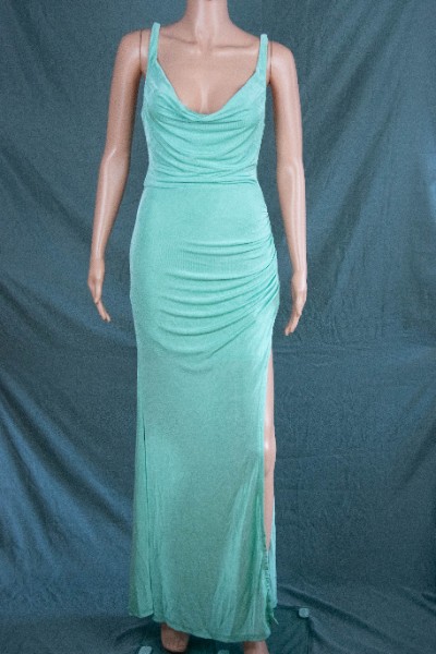 Drapiertes kreuzförmiges rückenfreies Kleid mit Beinschlitz, elegantes Brautjungfernkleid