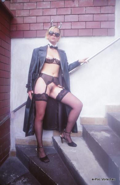 Jedes Dia dieses Sets zeichnet sich durch eine hochwertige Bildqualität aus und präsentiert die Modelle in kunstvoll inszenierten Settings. Die auf dem Dia abgebildete Person posiert mit einer beeindruckenden Mischung aus Verwegenheit und Stil, gekleidet in ein aufreizendes Ensemble aus Lack und Spitze, das Glamour und Verführung ausstrahlt. Ein besonderes Highlight ist der spielerische Umgang mit Accessoires wie der langen Peitsche und den stilisierten „Teufelshörnern“, die einen Hauch von Verspieltheit und Dominanz hinzufügen.
