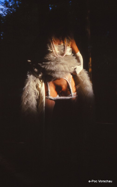 Tauchen Sie ein in die dunkle, verführerische Welt der erotischen Kunst durch das Auge des renommierten Erotikproduzenten Dominik Alterio. Dieses exklusive Sammlerstück, bekannt unter der Bezeichnung "Dia von Erotikproduzent Dominik Alterio P10-79", präsentiert eine ästhetisch ansprechende Darstellung in schattigen und geheimnisvollen Tönen. Das Dia zeigt eine sinnliche Inszenierung einer teilweise sichtbaren Figur, elegant gekleidet mit opulenten Perlenketten und einer verführerischen Federboa, die das Lichtspiel auf ihrer Haut gekonnt betont.