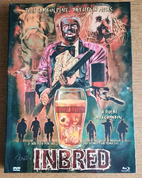 Verkaufe das kultige Mediabook zum britischen Splatter-Horror „INBRED“ von Alex Chandon – ein kompromissloser Genrebeitrag mit groteskem Humor und blutiger Härte.