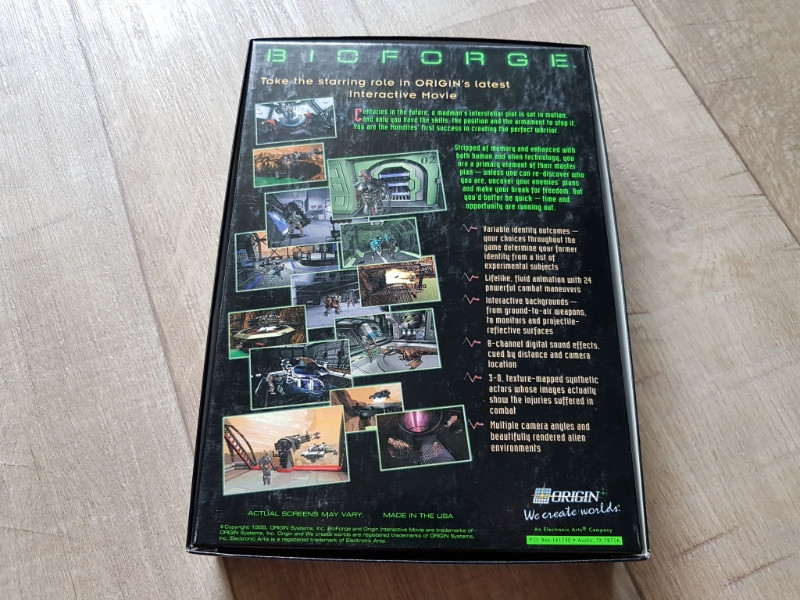 Verkaufe die originale Erstausgabe der US BIG BOX der PC Version von Bioforge aus dem Jahre 1995. Sie erkennen die US Version an dem "M" (Mature) Zeichen unten auf der Vorderseite der Box.