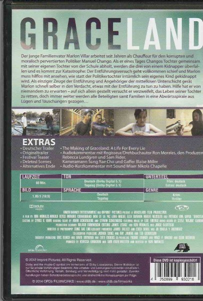 Erleben Sie mit der DVD "Graceland" eine Geschichte voller Spannung und dramatischer Wendungen, präsentiert von Regisseur Ron Morales. Dieser Film, der schon bei verschiedenen renommierten Filmfestivals wie Tribeca und Fantasia im Jahr 2012 ausgezeichnet wurde, fesselt von der ersten bis zur letzten Minute.